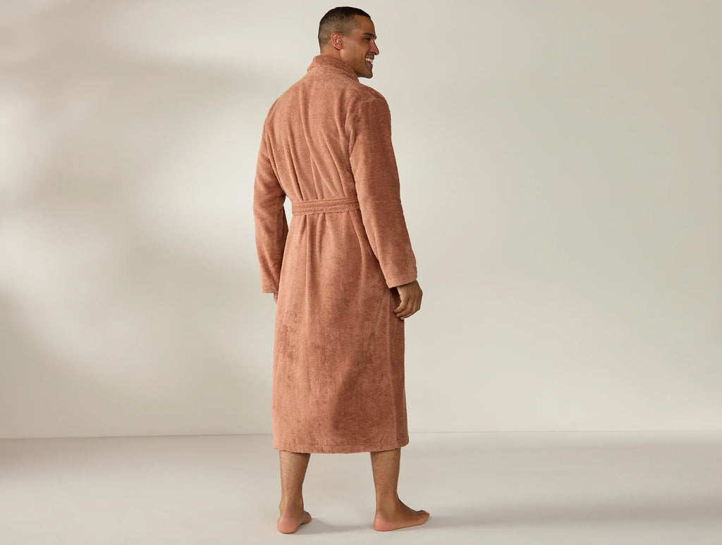 Inspired by Coyuchi's best-selling organic cotton Cloud Loom towels, this robe begins with the same long-staple cotton, loomed into single loops that feel thick and plush, yet lofty. The Aerospin process aligns the fibers in each yarn, making the robe just as soft and absorbent as our towels but a touch smoother and sleeker. The classic shawl-collared silhouette wraps cozily and features an adjustable belt and side pockets.