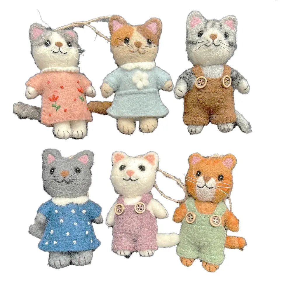 Add a sprinkle of whimsy to your decor with these handmade felted kitten ornaments, each one dressed in adorable anime-inspired outfits! These tiny kittens are lovingly crafted from soft wool and wear sweet little dresses and playful overalls, capturing the heartwarming charm of your favourite anime characters.