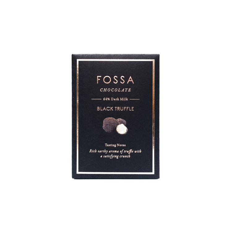 Indulge in the refined flavour of black truffle — an exquisite, powerful aroma reminiscent of damp undergrowth, earth, humus and mushrooms. Infused into floral Ecuadorian Costa Esmeraldas dark milk chocolate and mixed with crispy feuilletine, this is a bar with complex flavours and playful textures.