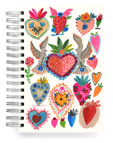 Inspired by Mexico and her love of Milagros hearts, Carolyn's original gouache painting from her sketchbook has made its way to this Jumbo Journal cover. Fun and loveable, it makes a great chunky gift for you or a special friend.